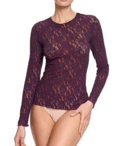 Hanky Panky Women’s Lingerie Signature Lace Long Sleeve Top Sugar Plum Red Sale | Sugar Plum Red