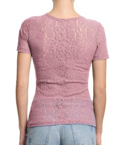 Hanky Panky Women’s Lingerie Flora Lace Short Sleeve Top Mauve Orchid Pink Sale | Mauve Orchid Pink