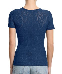Hanky Panky Women’s Lingerie Flora Lace Short Sleeve Top Night Owl Blue Sale | Night Owl Blue