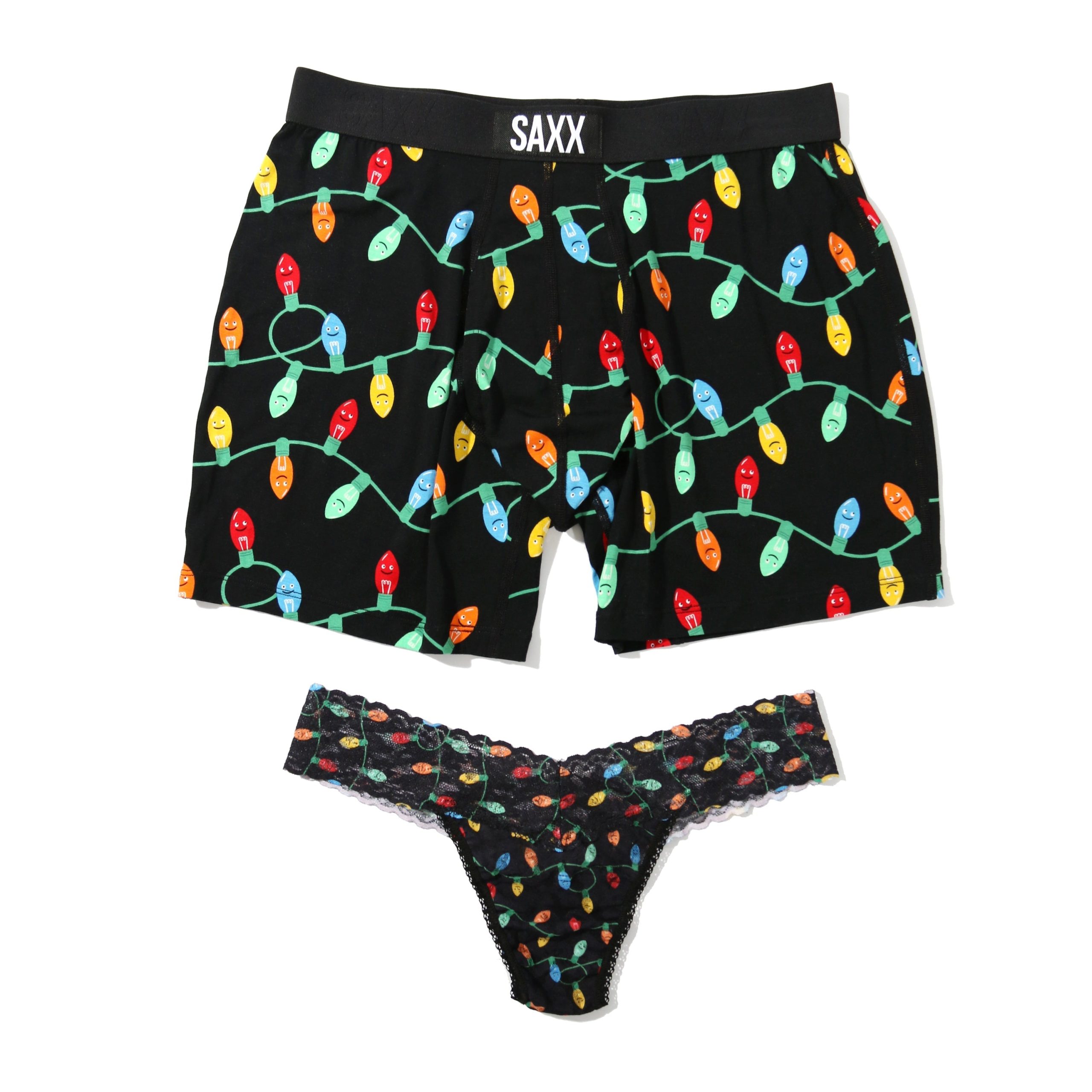 One for you, one for me. With matching colors and prints, our exclusive collaboration with Saxx Underwear is the perfect couples’ gift this holiday season that pairs an iconic Hanky Panky Signature Lace thong with a SAXX Boxer Brief.